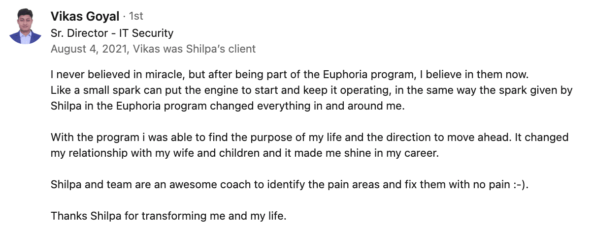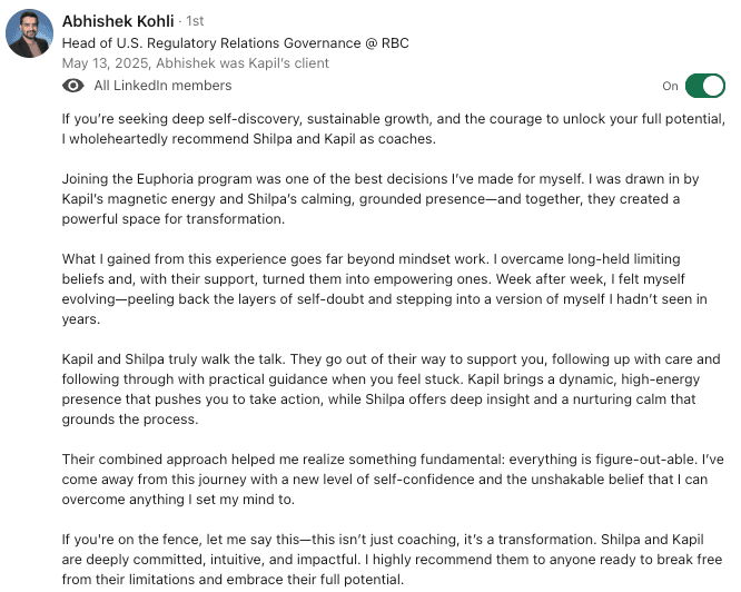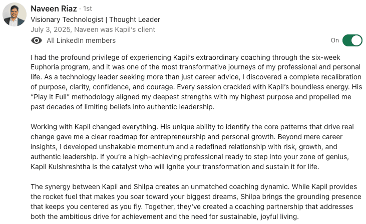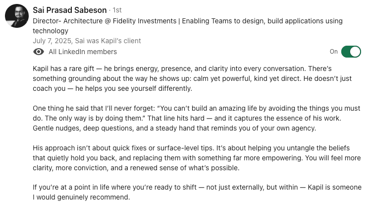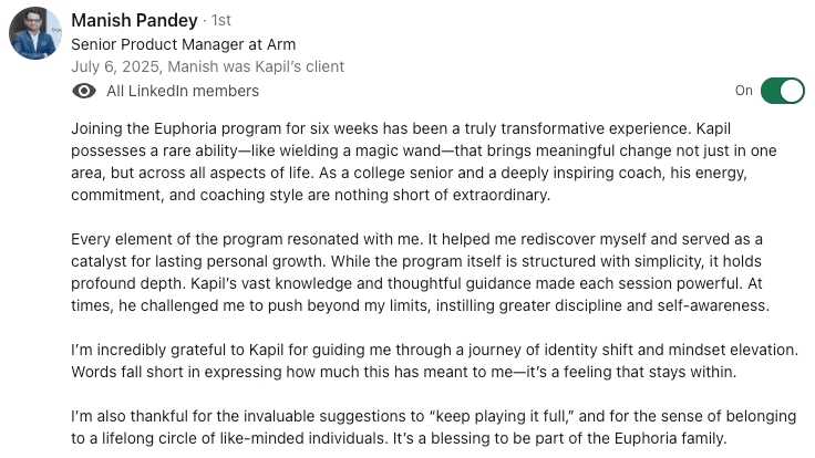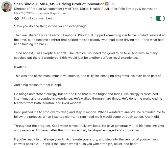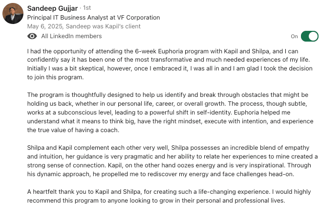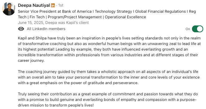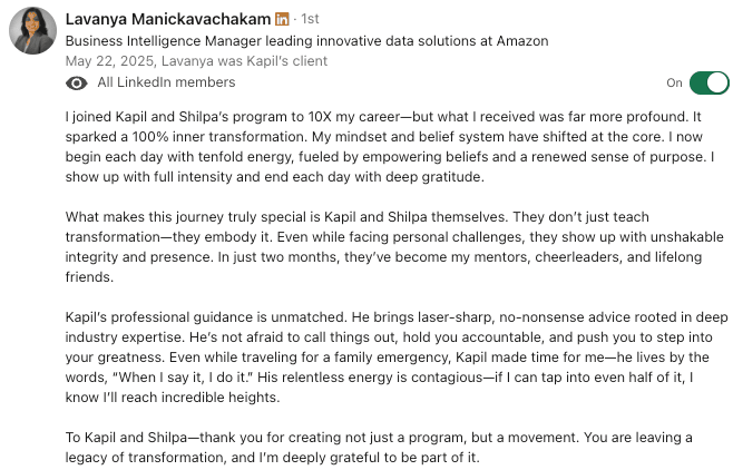 Sahil went on from being stuck for 8 years as a director to VP level and claimed the top 3 awards at Amex- all in 5 months