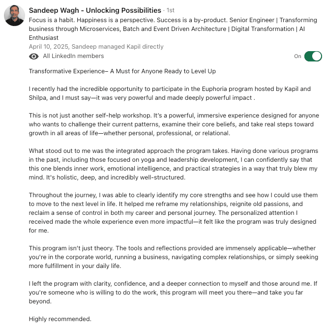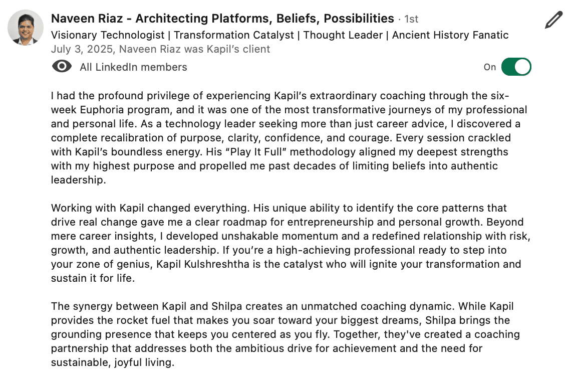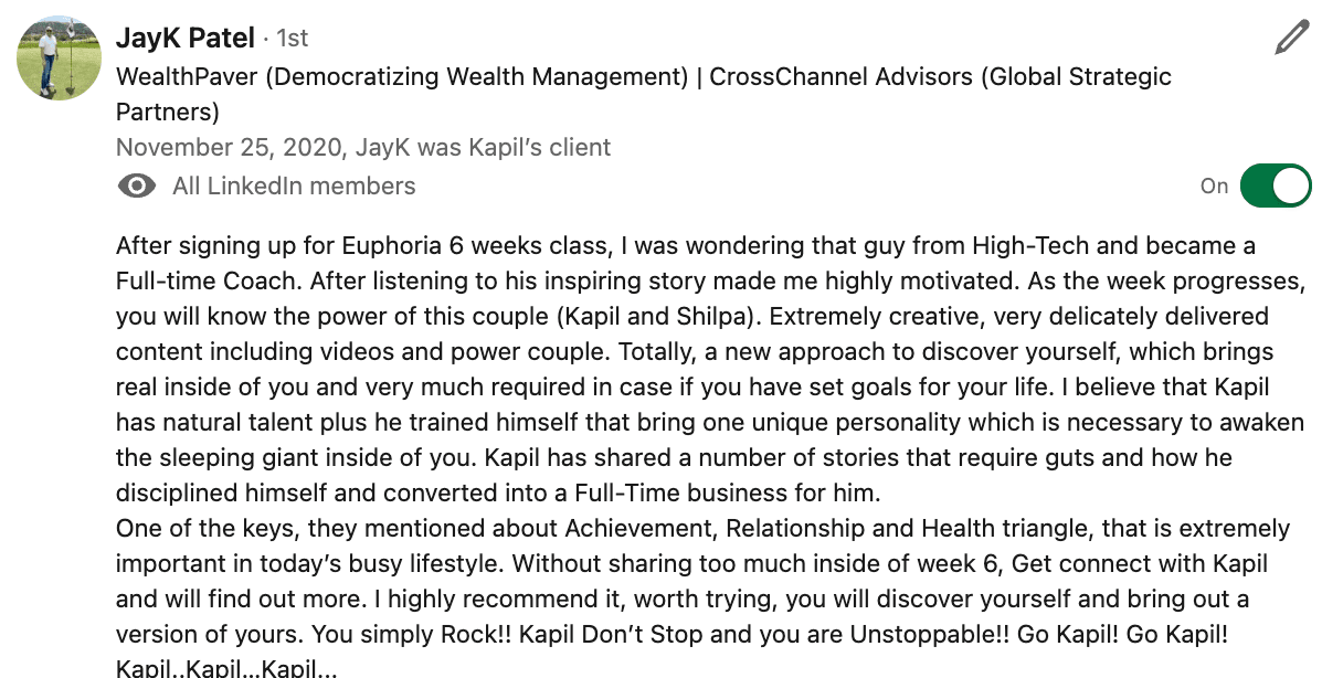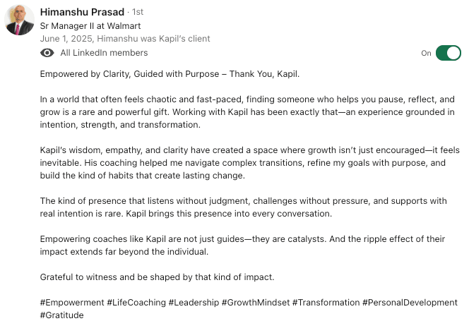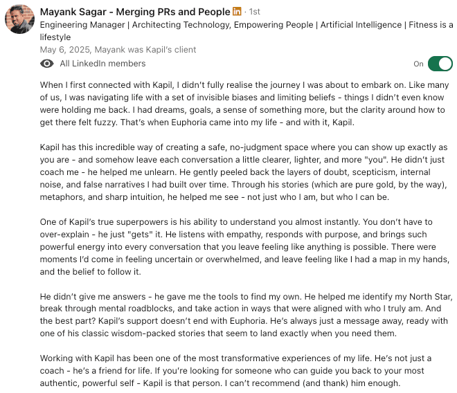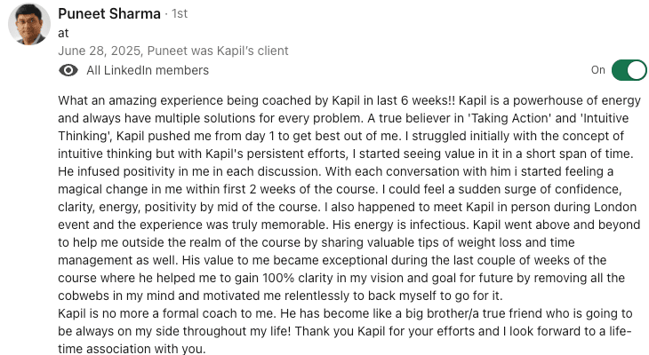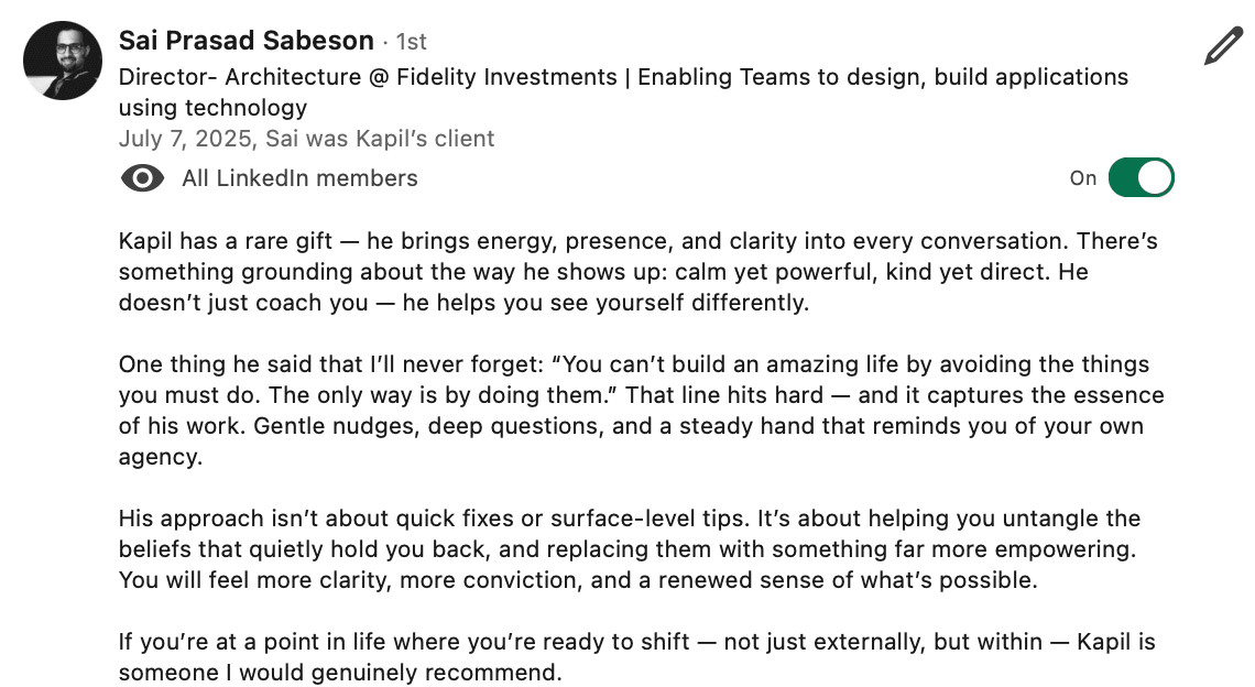 Sahil went on from being stuck for 8 years as a director to VP level and claimed the top 3 awards at Amex- all in 5 months